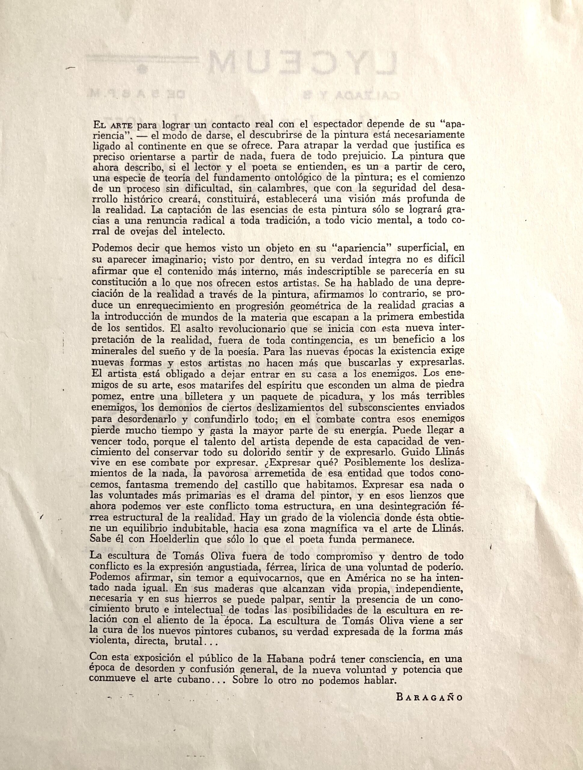 1957, La HabanaChristoph Singler2025-11-20T12:03:42+01:00 - 1957, La HabanaExposición en el Lyceum, con el escultor Tomás Oliva El texto es de José Álvarez Baragaño ex1957/01