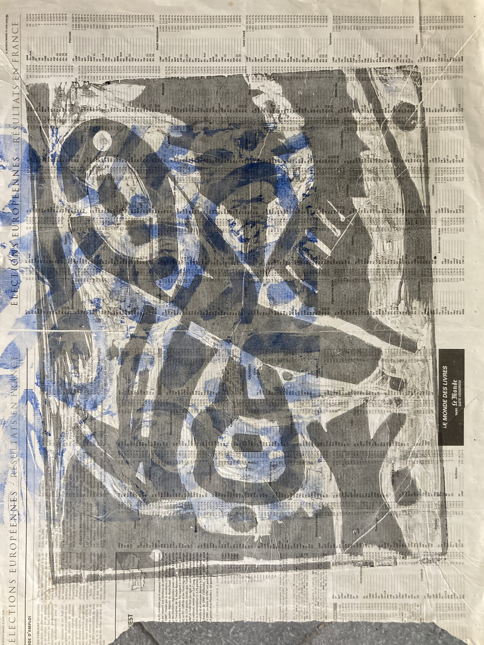 gravure/bois sur papier journal