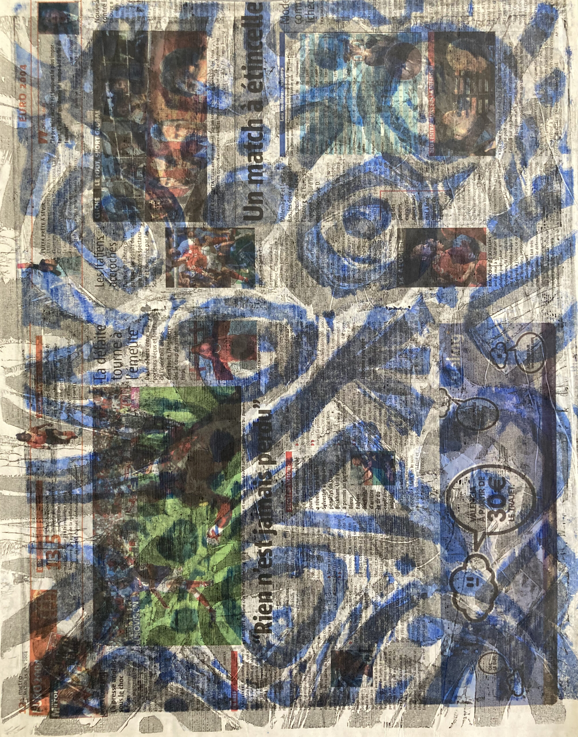 gravure/bois sur papier journal